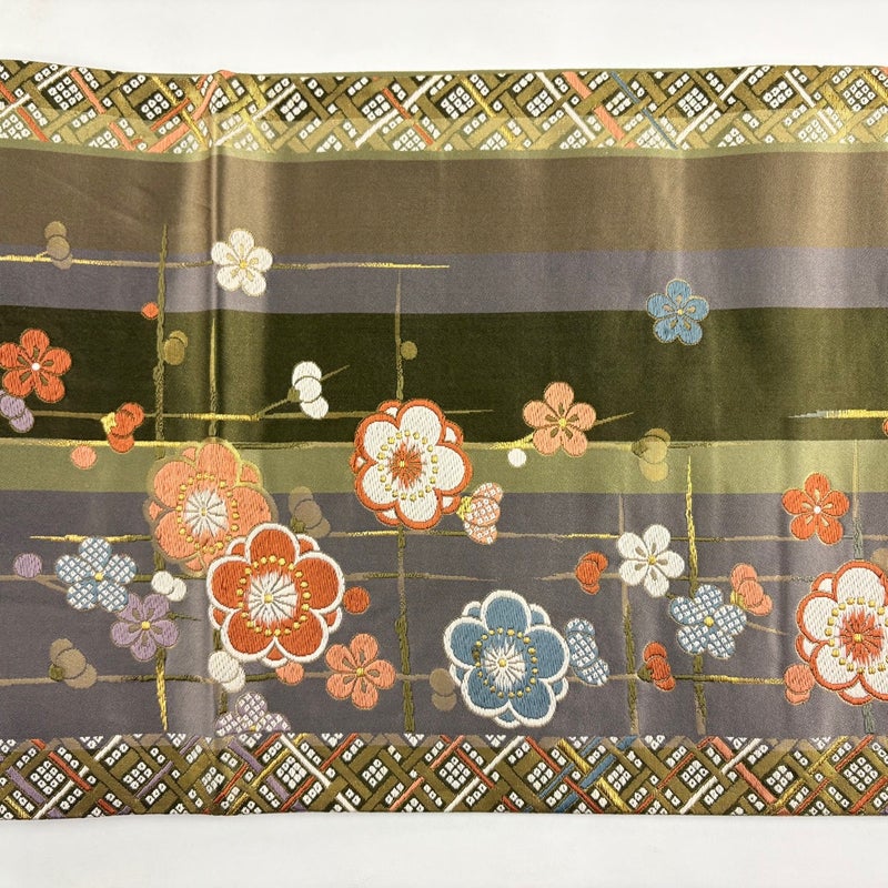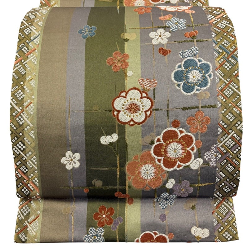 【袋帯】 灰色系 灰緑 秀品 B 帯丈426cm~435cm 4000-7980 二万以下