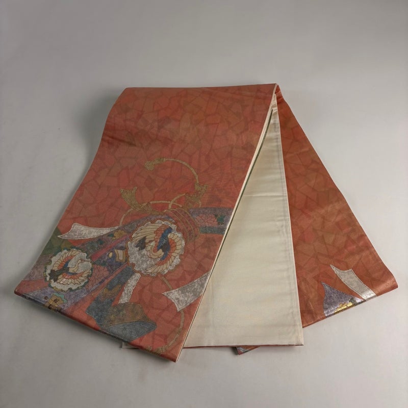 【着物ランク】秀品 【素材】正絹 【帯丈】約446cm 【帯幅】約30.5cm 【帯仕立て】仕立て上がり 【状態ランク】ランクB 【帯着用シーン】セミフォーマル(色無地・付下げ)