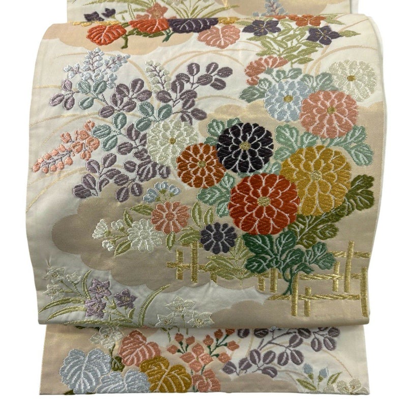 【袋帯】 白系 クリーム 名品 C 帯丈426cm~435cm 9990-29990 二万以下