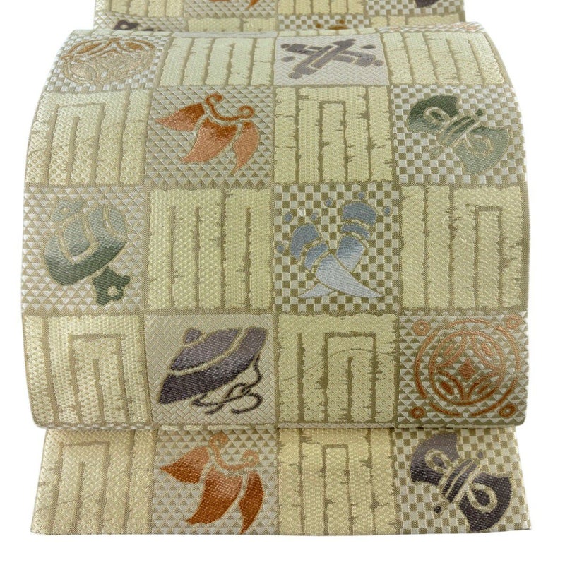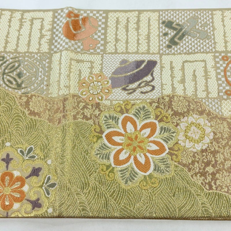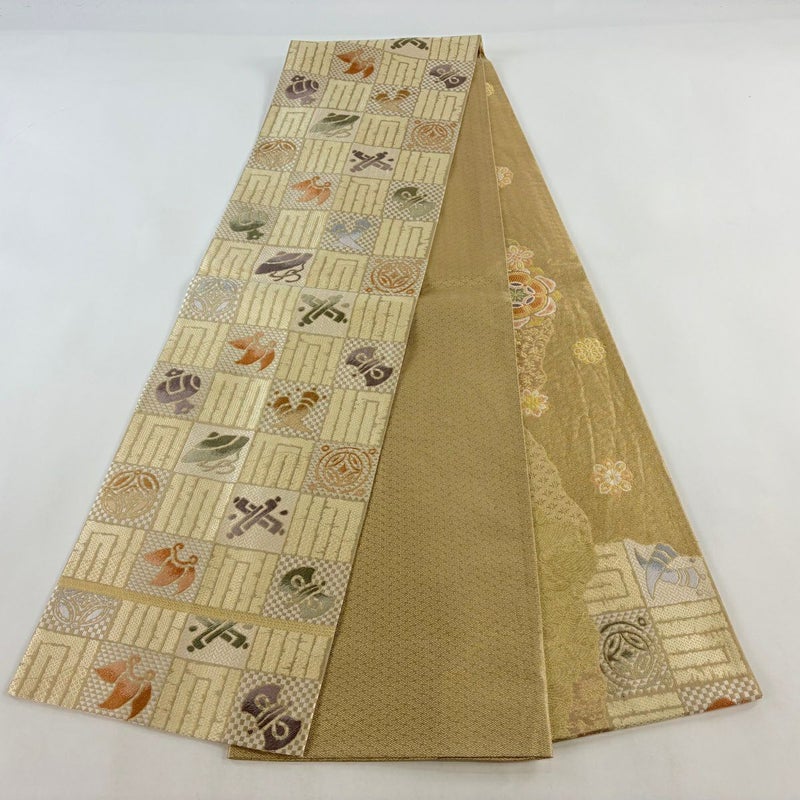 【袋帯】 白系 ベージュ 名品 A 帯丈436cm以上 9990-29990 美品 二万以下