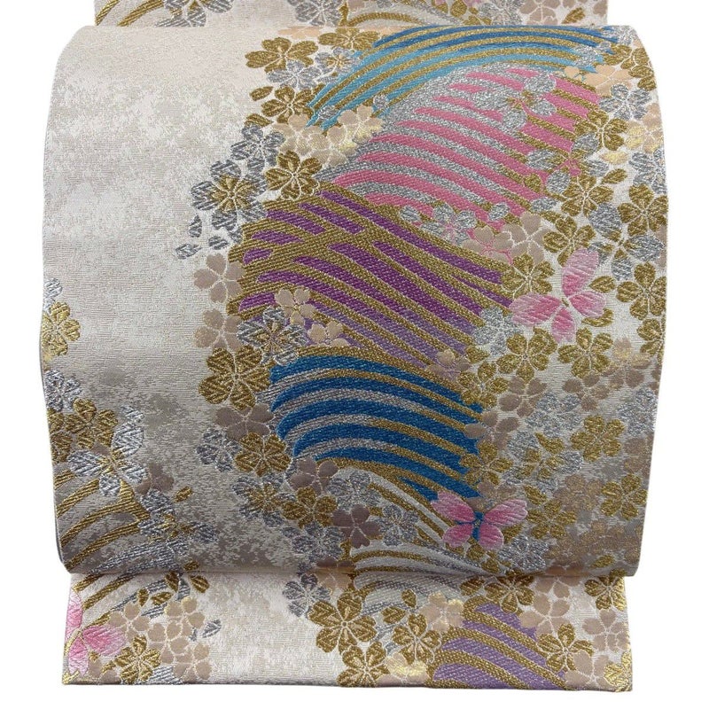 【袋帯】 白系 クリーム 秀品 A 帯丈436cm以上 7990-9980 美品 二万以下