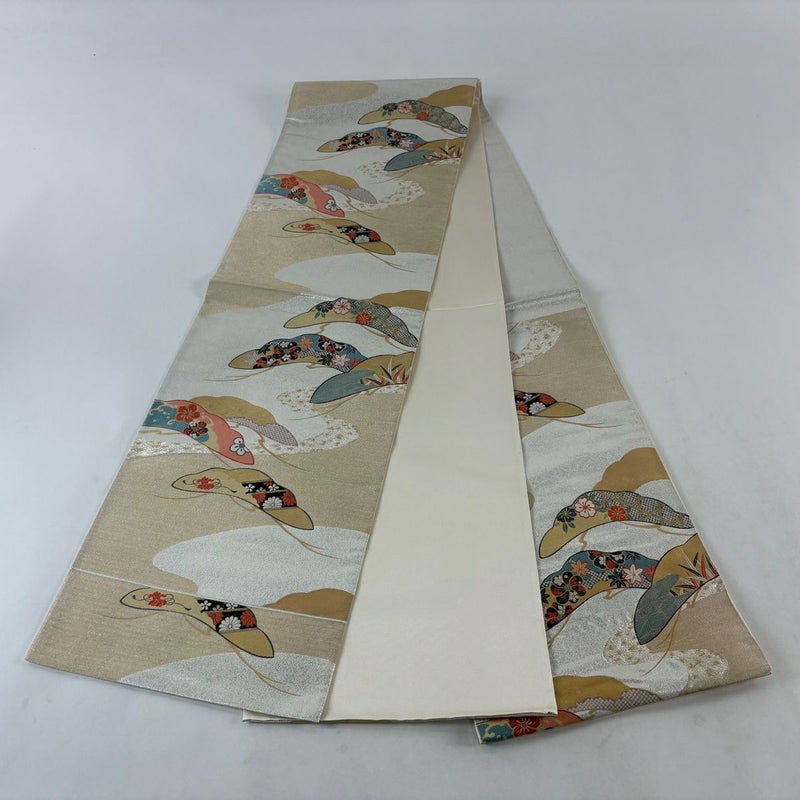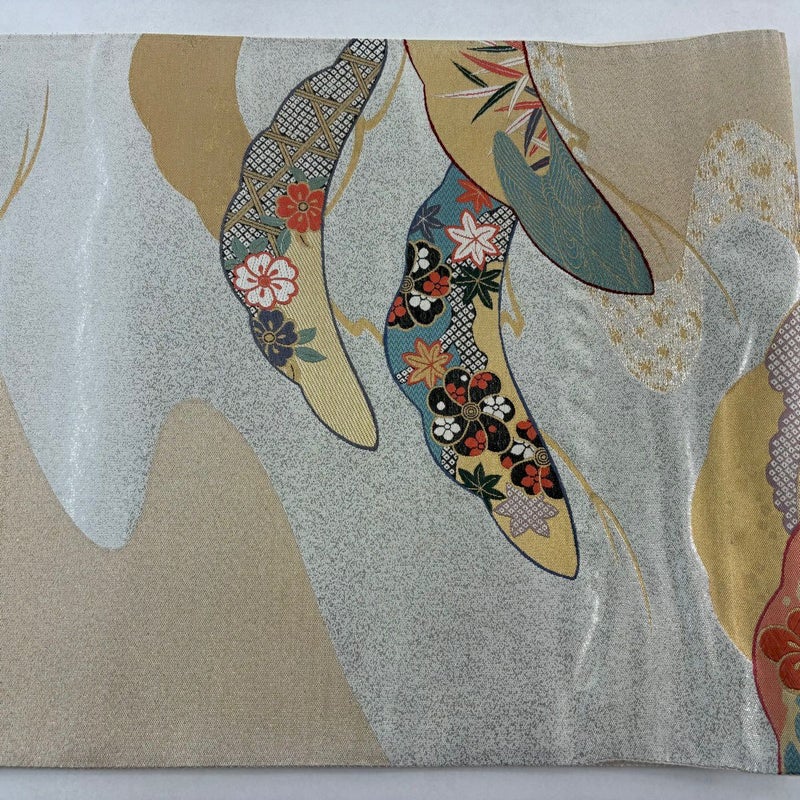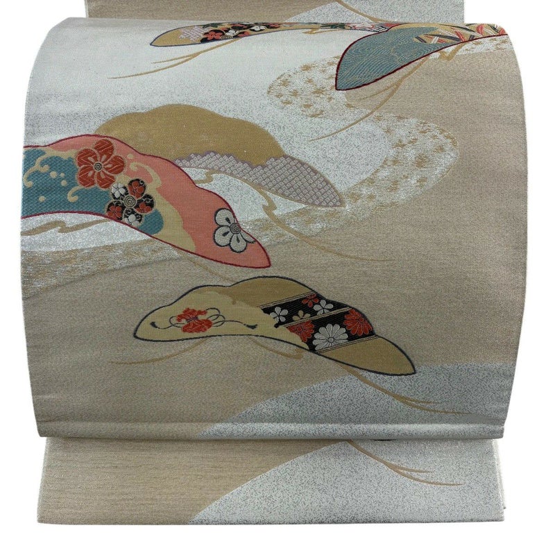 【袋帯】 白系 ベージュ 秀品 A 帯丈436cm以上 7990-9980 美品 二万以下