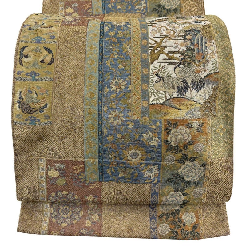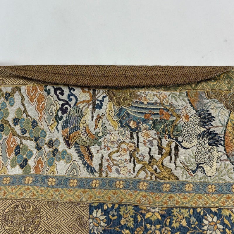 おめでたい席に相応しい意匠の袋帯でございます。 格式高いお席にもお使いいただけますので、お見逃しのないようお願いいたします。 締め跡がございます。 締め跡沿いに生地の傷み、お太鼓にシミ、中無地所々と前柄お太鼓間にシワ、手先の帯縁に縫い目のほつれ、垂先の織り出し口に仕立ての歪みがございます。 リユース品としては良い状態で、まだまだご活用頂けると思われます。 ※なお、厳しく商品の状態確認を行っておりますが、記載の汚れ以外にも見落とし箇所がある可能性がある旨ご了承いただけますと幸いです。 沢山の商品の中からご覧いただき誠にありがとうございます。