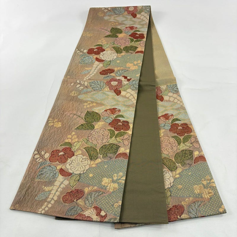 【着物ランク】秀品 【素材】正絹 【帯丈】約426cm 【帯幅】約30.5cm 【帯仕立て】仕立て上がり 【状態ランク】ランクA 【帯着用シーン】セミフォーマル(色無地・付下げ)