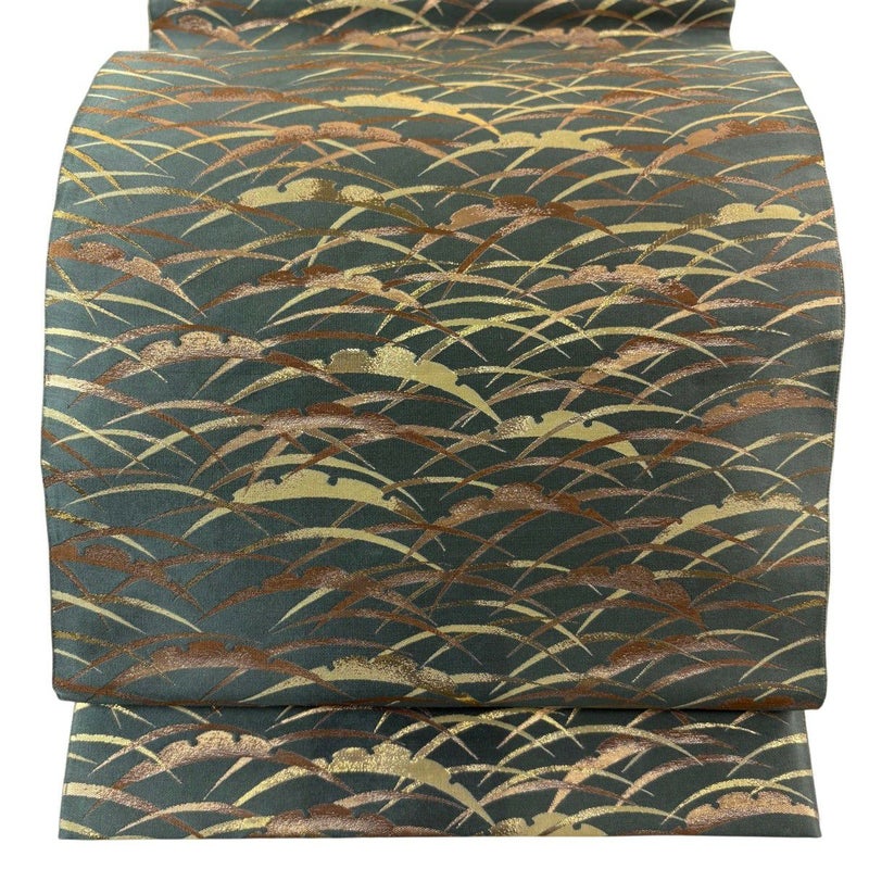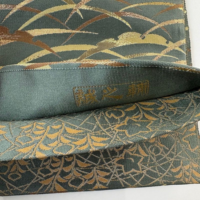 【袋帯】 灰色系 灰緑 秀品 A 帯丈436cm以上 7990-9980 美品 二万以下