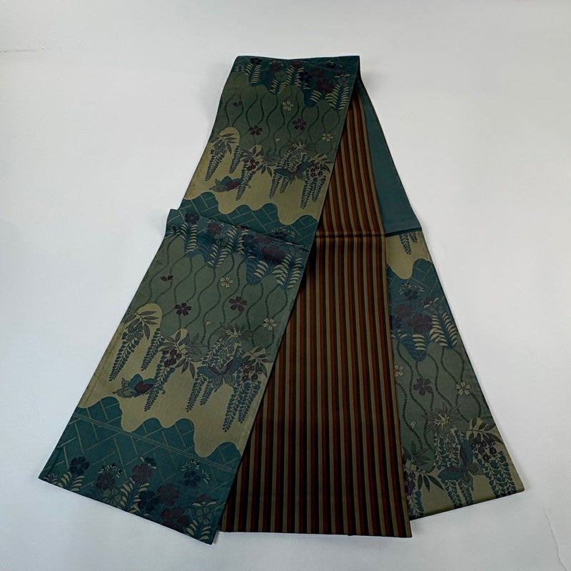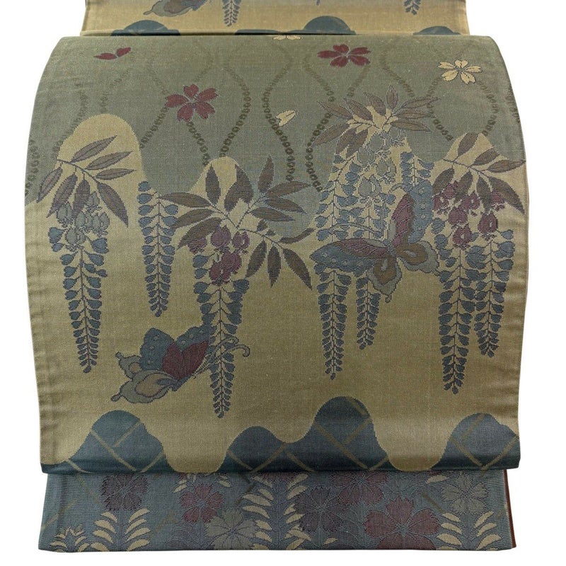 【袋帯】 灰色系 灰緑 秀品 A 帯丈436cm以上 7990-9980 美品 二万以下