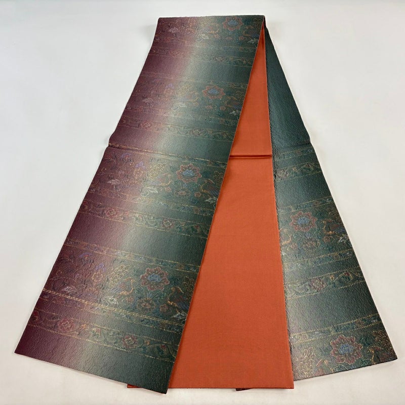 【袋帯】 緑系 深緑 秀品 A 帯丈426cm~435cm 7990-9980 美品 二万以下