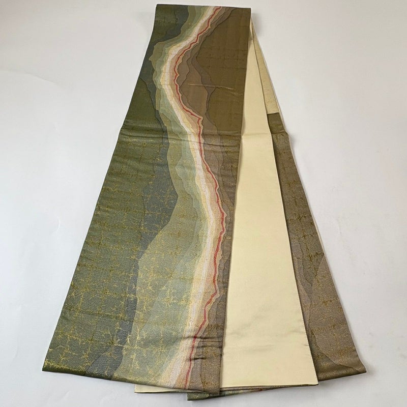 【袋帯】 緑系 鶯色 秀品 A 帯丈436cm以上 7990-9980 美品 二万以下