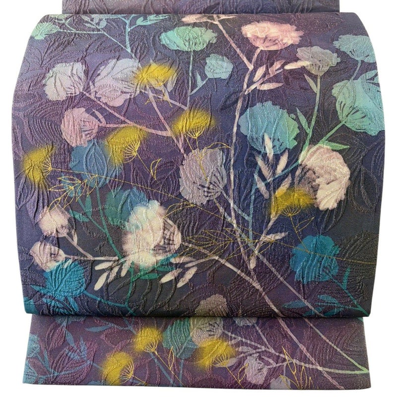 セミフォーマルでお使いいただける袋帯でございます。 見る人に重たい印象を感じさせない女性ならではの、気品豊かな一品です。 締め跡がございます。 リユース品としては目立った染み傷なく、状態の良いお品でございます。 ※なお、厳しく商品の状態確認を行っておりますが、記載の汚れ以外にも見落とし箇所がある可能性がある旨ご了承いただけますと幸いです。 沢山の商品の中からご覧いただき誠にありがとうございます。