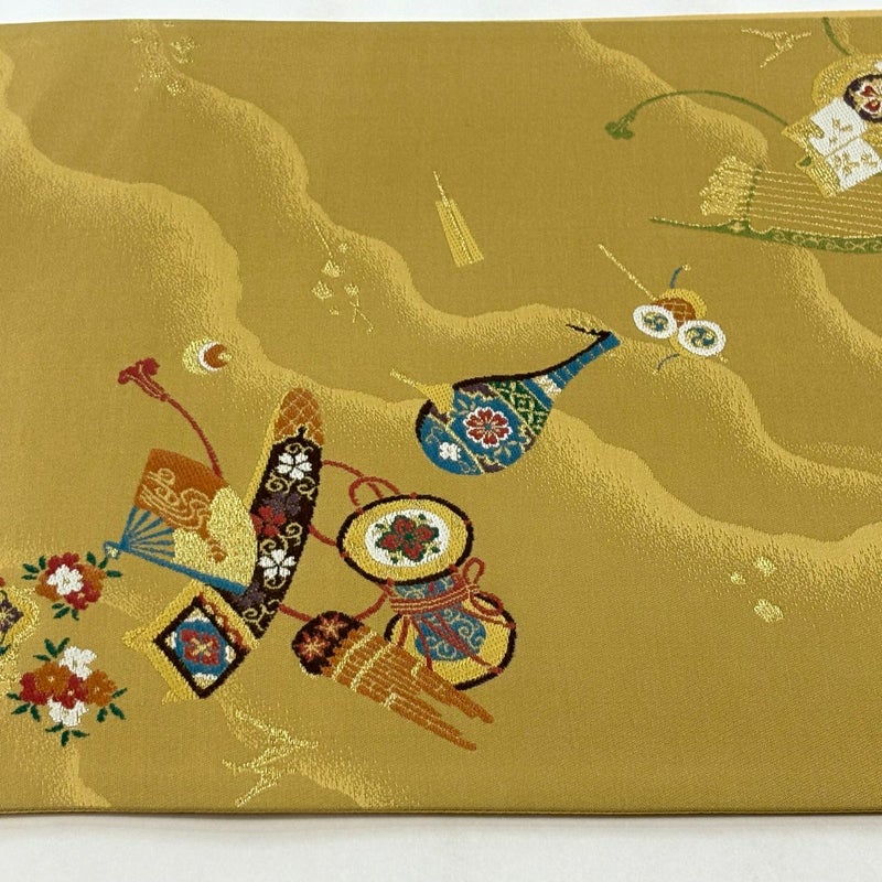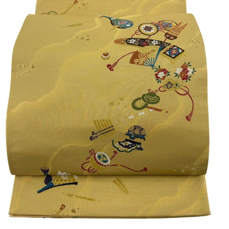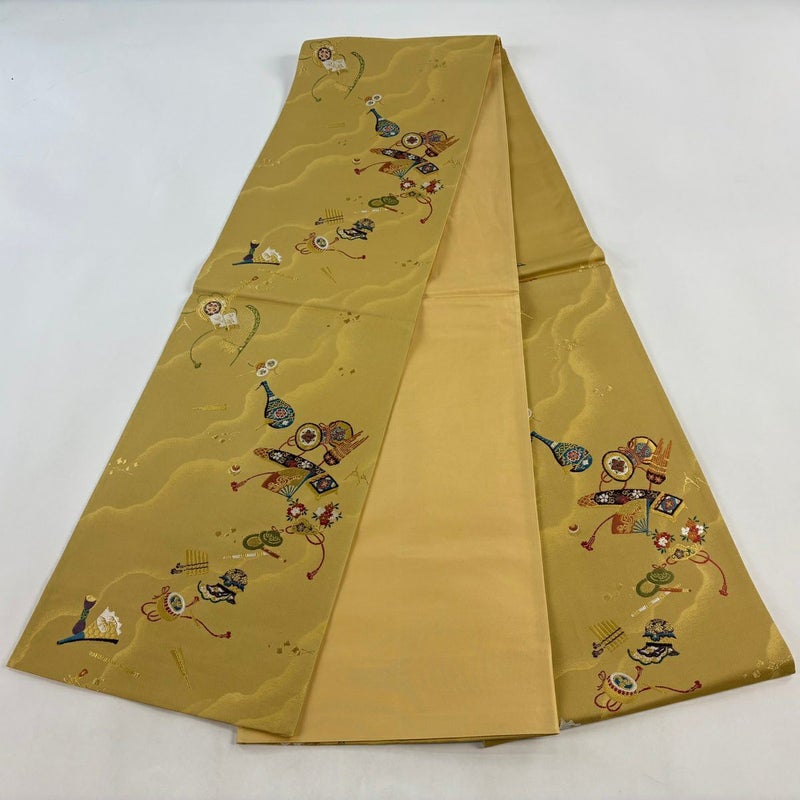 【袋帯】 黄色系 からし色 秀品 A 帯丈436cm以上 7990-9980 美品 二万以下