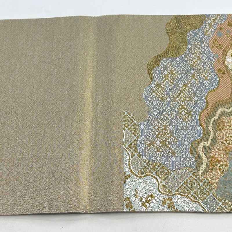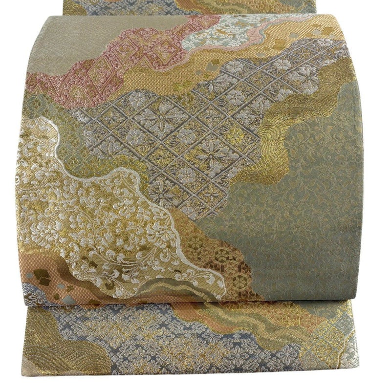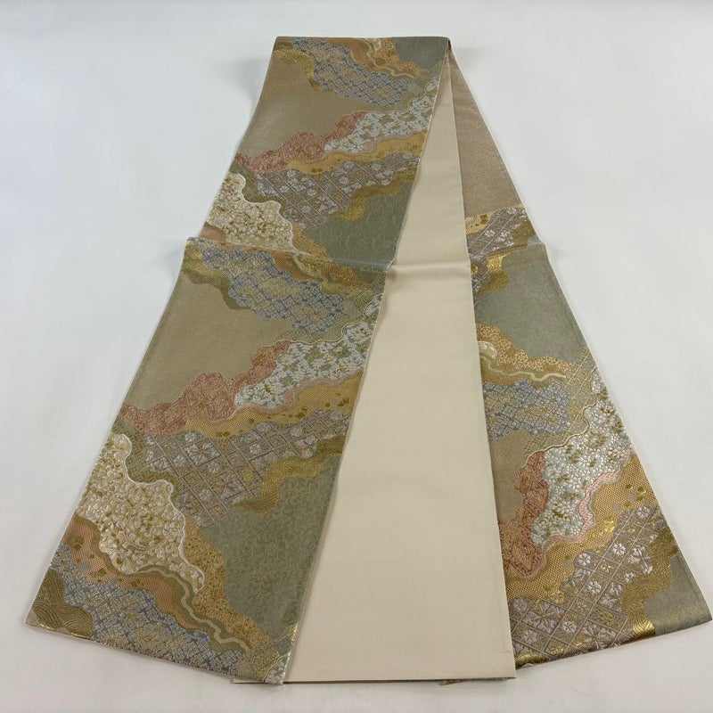 【袋帯】 灰色系 灰緑 秀品 A 帯丈436cm以上 7990-9980 美品 二万以下