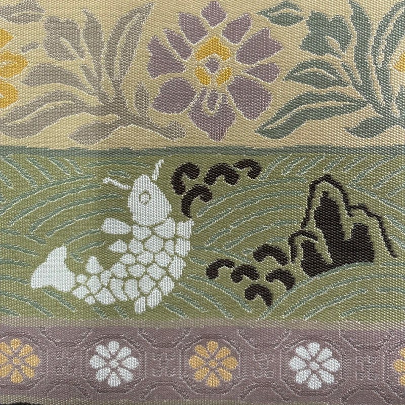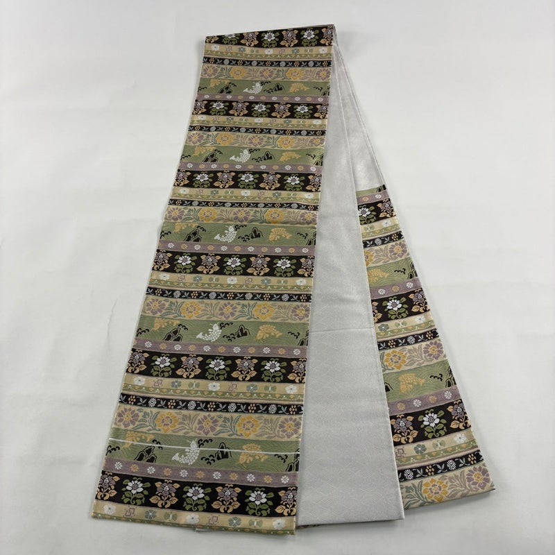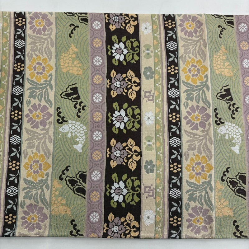 普段使いでお使いいただける袋帯でございます。 カジュアルな装いに合わせてお使いください。 締め跡がございます。 お太鼓に糸ゆるみがございます。 リユース品としては目立った染み傷なく、状態の良いお品でございます。 ※なお、厳しく商品の状態確認を行っておりますが、記載の汚れ以外にも見落とし箇所がある可能性がある旨ご了承いただけますと幸いです。 沢山の商品の中からご覧いただき誠にありがとうございます。