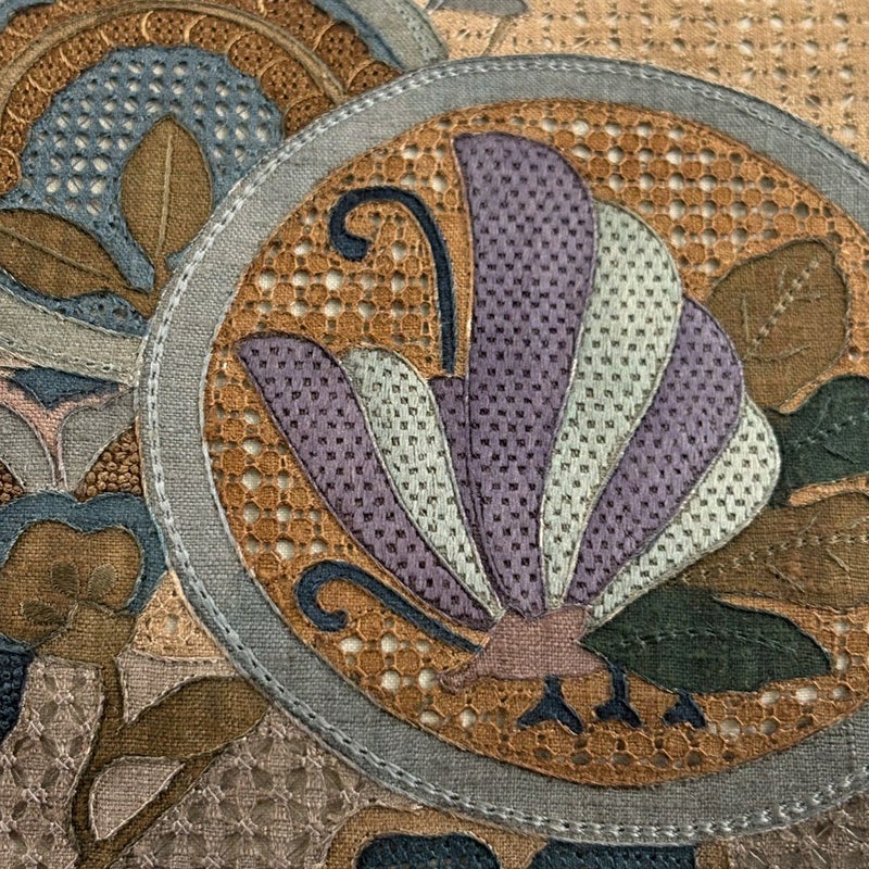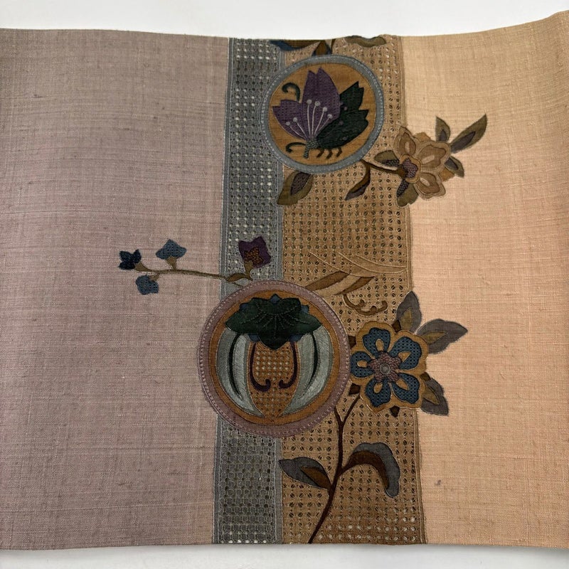 セミフォーマルでお使いいただける袋帯でございます。 見る人に重たい印象を感じさせない女性ならではの、気品豊かな一品です。 締め跡がございます。 リユース品としては目立った染み傷なく、状態の良いお品でございます。 ※なお、厳しく商品の状態確認を行っておりますが、記載の汚れ以外にも見落とし箇所がある可能性がある旨ご了承いただけますと幸いです。 沢山の商品の中からご覧いただき誠にありがとうございます。