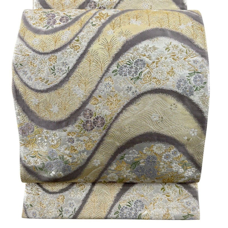 【袋帯】 灰色系 灰紫 秀品 A 帯丈426cm~435cm 7990-9980 美品 二万以下