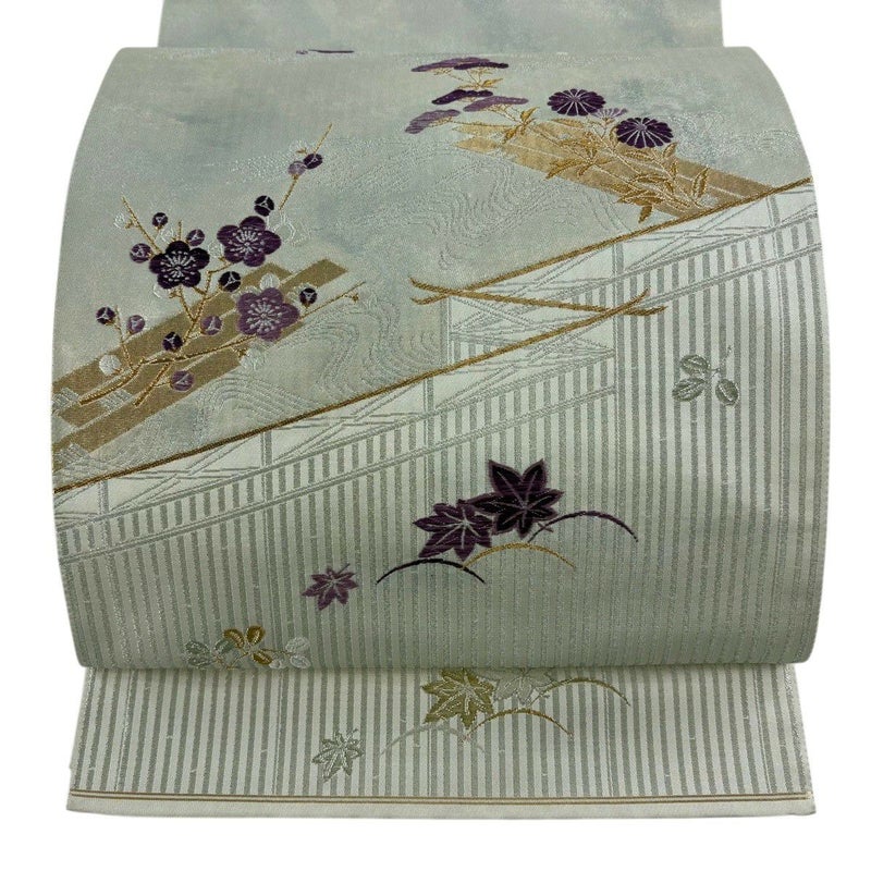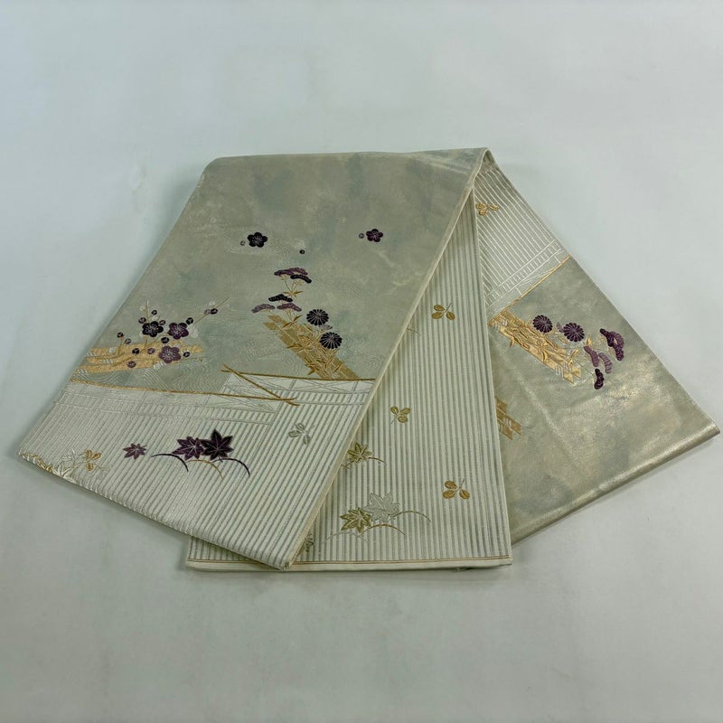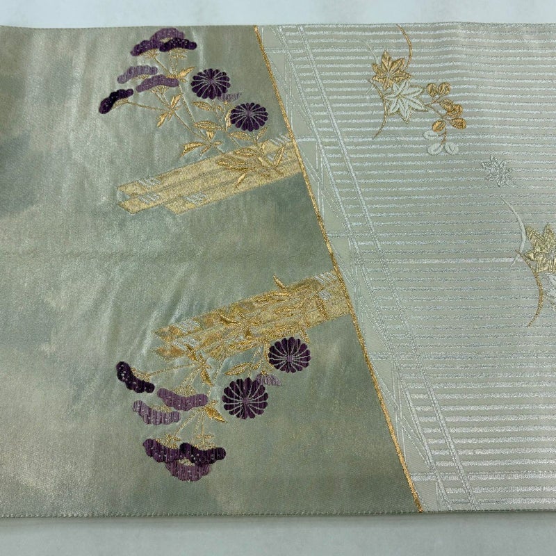 【袋帯】 灰色系 灰白 秀品 A 帯丈401cm~425cm 7990-9980 美品 二万以下
