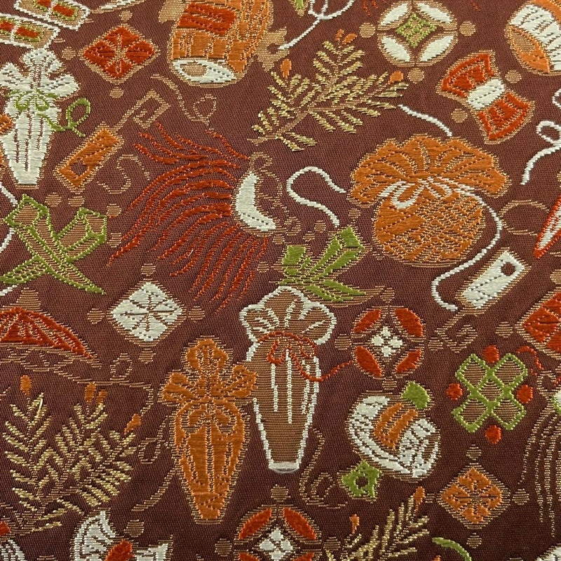 おめでたい席に相応しい意匠の袋帯でございます。 格式高いお席にもお使いいただけますので、お見逃しのないようお願いいたします。 締め跡がございます。 中無地と前柄お太鼓間にシワがございます。 裏地所々に薄いシミがございます。 リユース品としては目立った染み傷なく、状態の良いお品でございます。 ※なお、厳しく商品の状態確認を行っておりますが、記載の汚れ以外にも見落とし箇所がある可能性がある旨ご了承いただけますと幸いです。 沢山の商品の中からご覧いただき誠にありがとうございます。