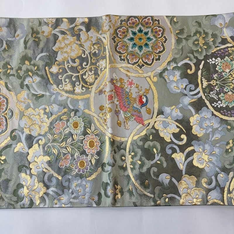【袋帯】 緑系 薄緑 秀品 A 帯丈436cm以上 7990-9980 美品 二万以下