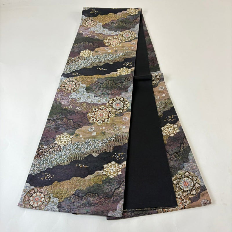 【袋帯】 灰色系 黒灰 秀品 A 帯丈436cm以上 7990-9980 美品 二万以下