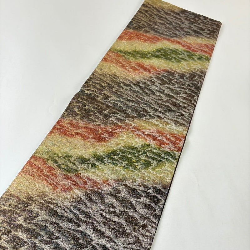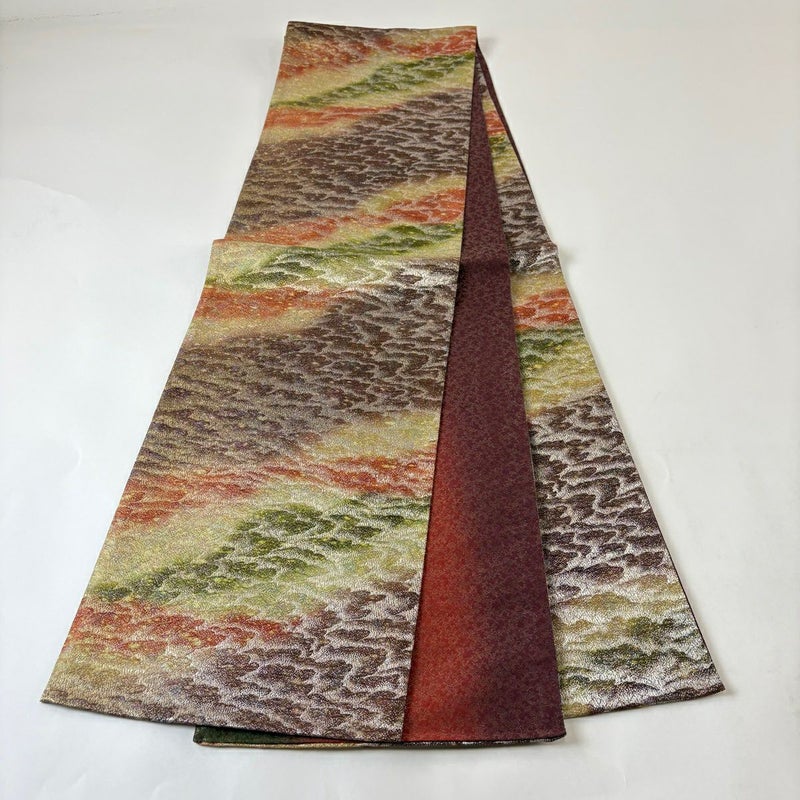 【袋帯】 茶系 茶緑色 秀品 A 帯丈436cm以上 7990-9980 美品 二万以下