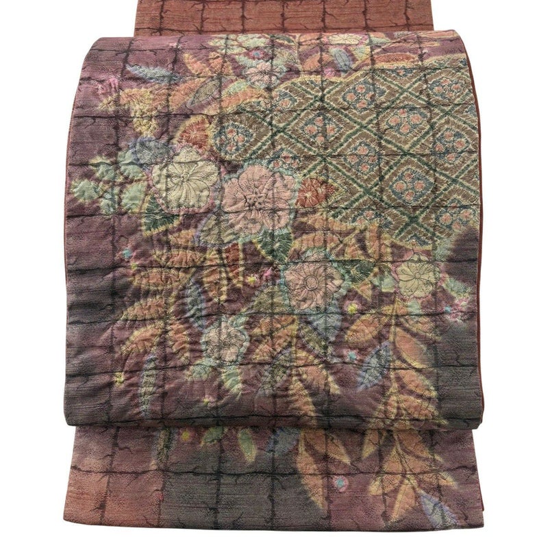 セミフォーマルでお使いいただける袋帯でございます。 見る人に重たい印象を感じさせない女性ならではの、気品豊かな一品です。 締め跡がございます。 リユース品としては目立った染み傷なく、状態の良いお品でございます。 ※なお、厳しく商品の状態確認を行っておりますが、記載の汚れ以外にも見落とし箇所がある可能性がある旨ご了承いただけますと幸いです。 沢山の商品の中からご覧いただき誠にありがとうございます。