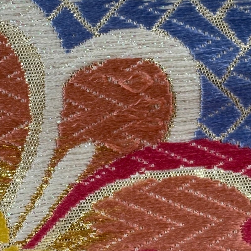 セミフォーマルでお使いいただける袋帯でございます。 見る人に重たい印象を感じさせない女性ならではの、気品豊かな一品です。 締め跡がございます。 お太鼓垂先間に糸ゆるみがございます。 リユース品としては目立った染み傷なく、状態の良いお品でございます。 ※なお、厳しく商品の状態確認を行っておりますが、記載の汚れ以外にも見落とし箇所がある可能性がある旨ご了承いただけますと幸いです。 沢山の商品の中からご覧いただき誠にありがとうございます。