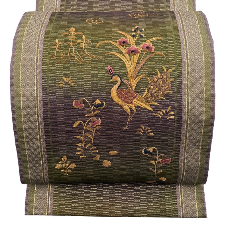 【袋帯】 茶系 茶緑色 名品 B 帯丈436cm以上 9990-29990 二万以下