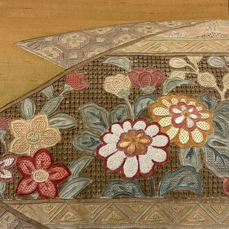 セミフォーマルでお使いいただける袋帯でございます。 見る人に重たい印象を感じさせない女性ならではの、気品豊かな一品です。 締め跡がございます。 前柄お太鼓間に薄汚れ、前柄お太鼓間にシワがございます。 リユース品としては目立った染み傷なく、状態の良いお品でございます。 ※なお、厳しく商品の状態確認を行っておりますが、記載の汚れ以外にも見落とし箇所がある可能性がある旨ご了承いただけますと幸いです。 沢山の商品の中からご覧いただき誠にありがとうございます。