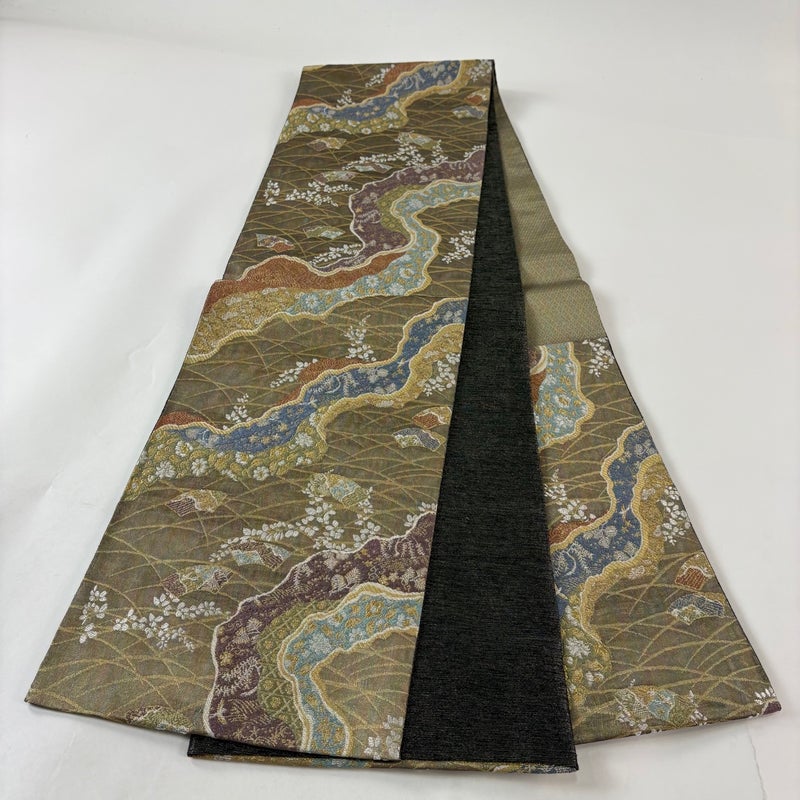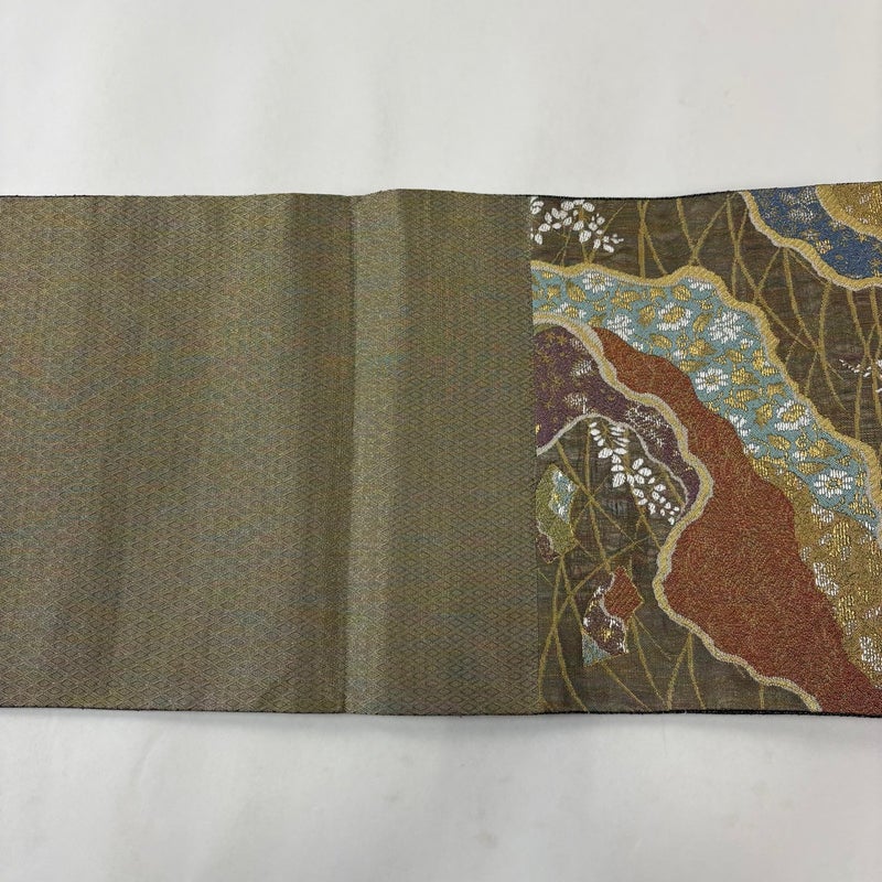 【袋帯】 茶系 茶緑色 名品 A 帯丈436cm以上 9990-29990 美品 二万以下