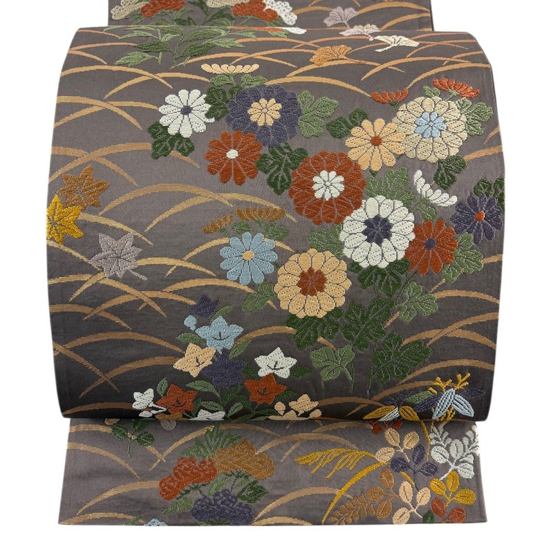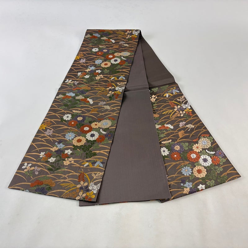 【袋帯】 灰色系 灰茶 秀品 A 帯丈426cm~435cm 7990-9980 美品 二万以下