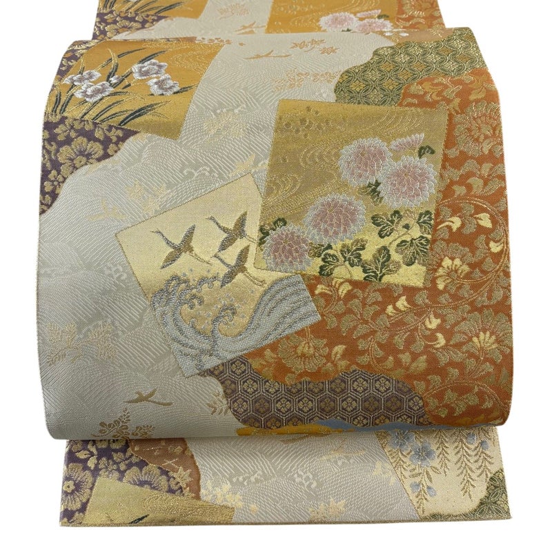 【袋帯】 白系 ベージュ 秀品 A 帯丈436cm以上 7990-9980 美品 二万以下