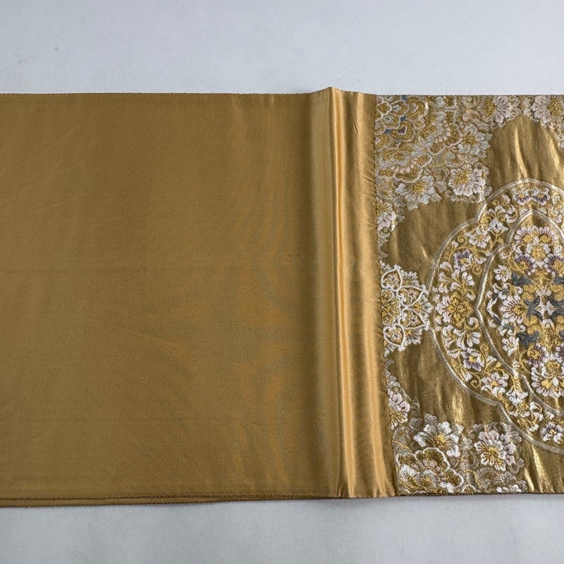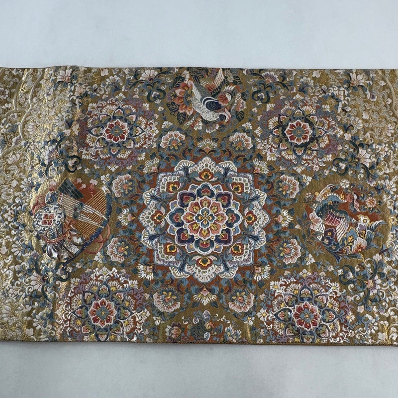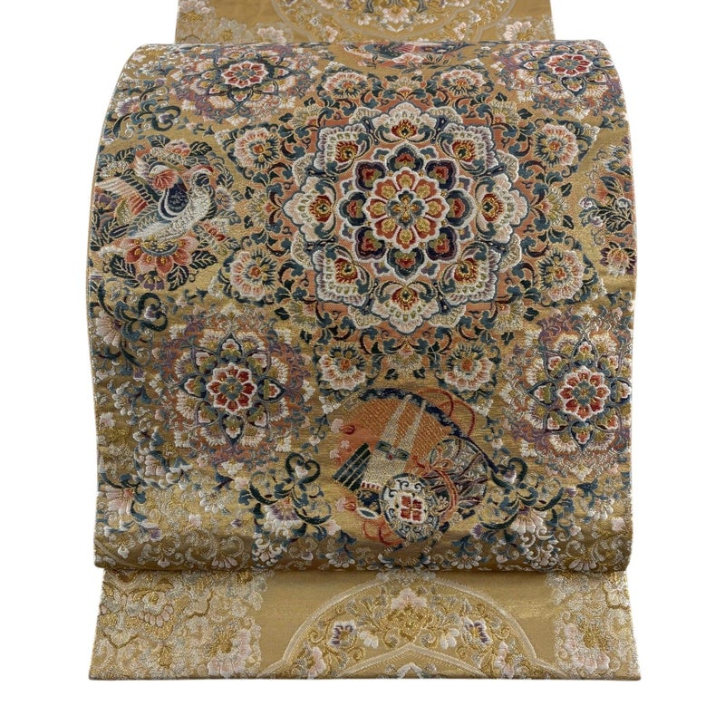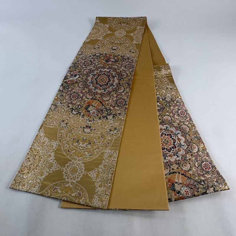 【美品】 袋帯 秀品 華文 花鳥 金銀糸 箔 金色 六通 正絹