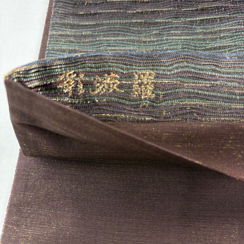 【美品】 袋帯 秀品 本泥染 よろけ縞 金糸 焦茶色 全通 正絹