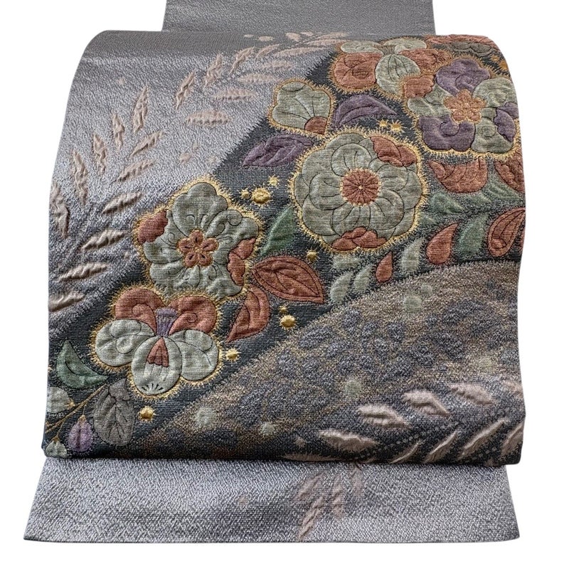 【袋帯】 灰色系 灰紫 秀品 A 帯丈436cm以上 7990-9980 美品 二万以下