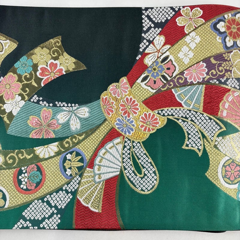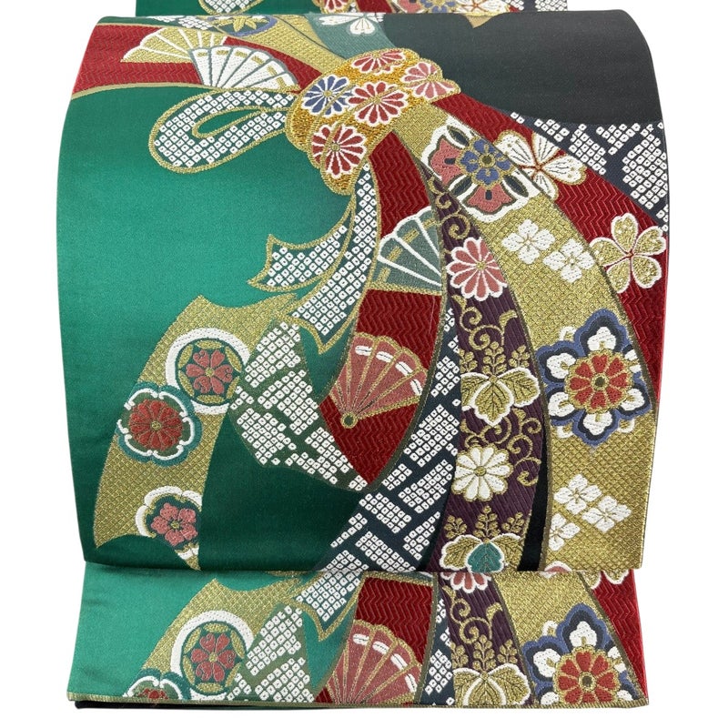 【袋帯】 緑系 緑 秀品 A 帯丈436cm以上 7990-9980 美品 二万以下