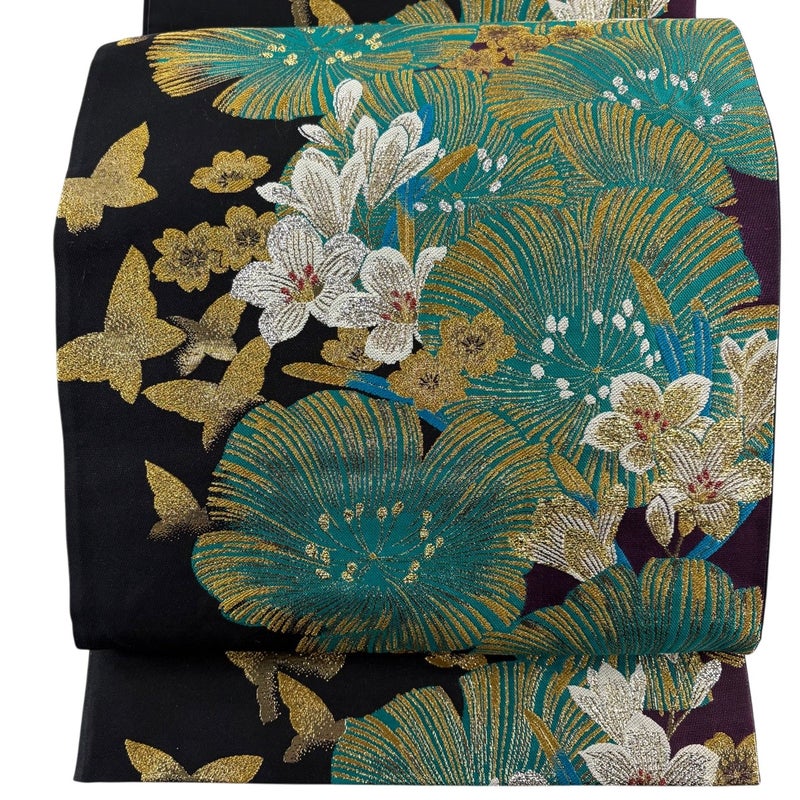 【袋帯】 黒系 黒 秀品 A 帯丈436cm以上 7990-9980 美品 二万以下