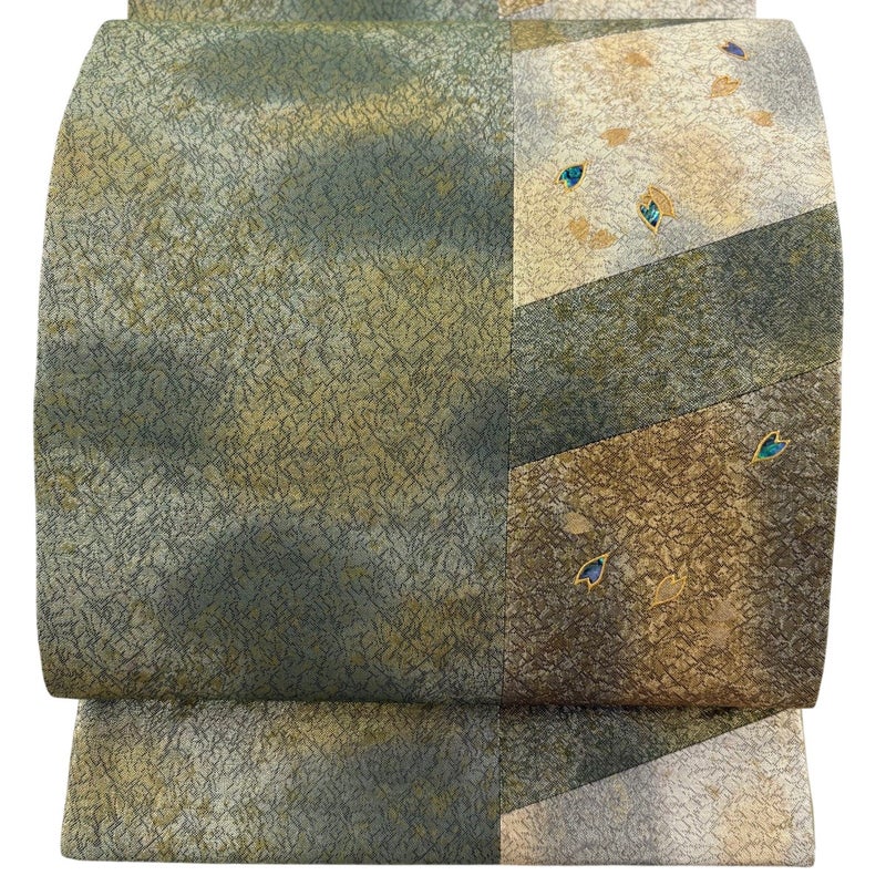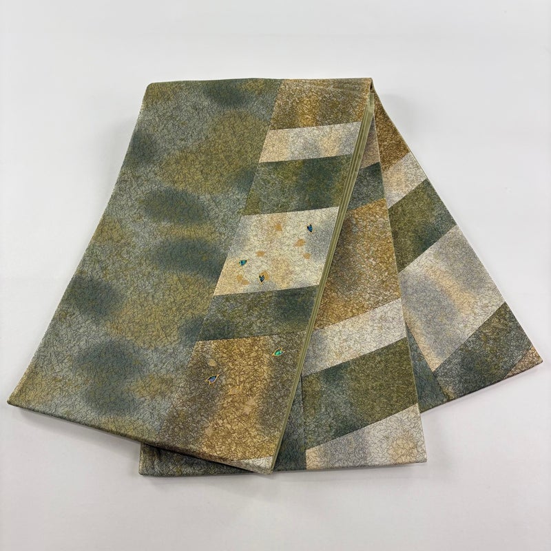 【袋帯】 緑系 よもぎ色 秀品 A 帯丈436cm以上 7990-9980 美品 二万以下