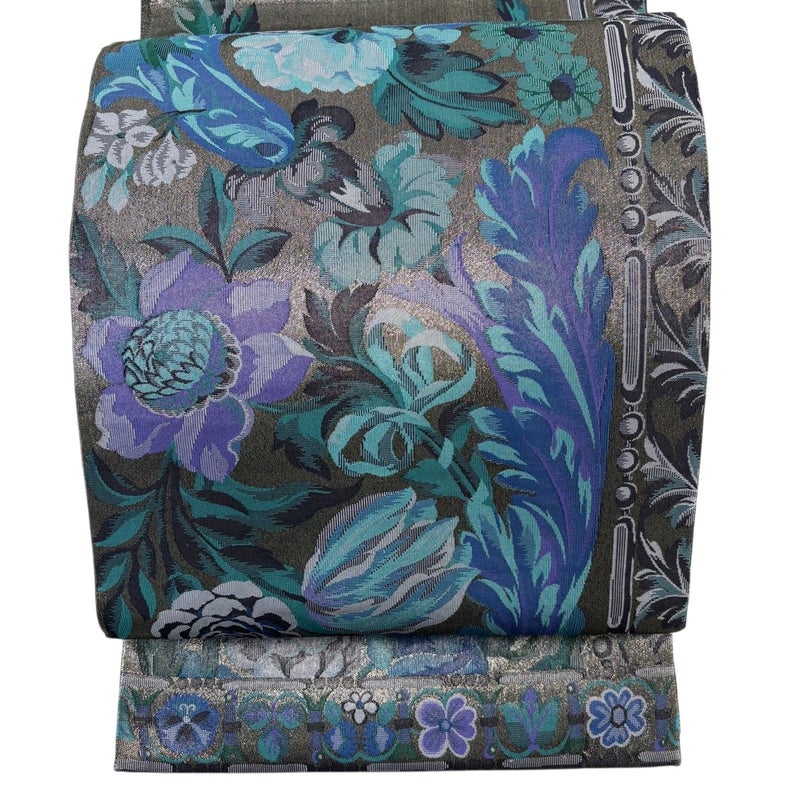 【袋帯】 灰色系 灰緑 秀品 A 帯丈436cm以上 7990-9980 美品 二万以下