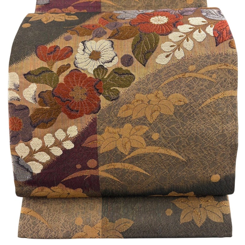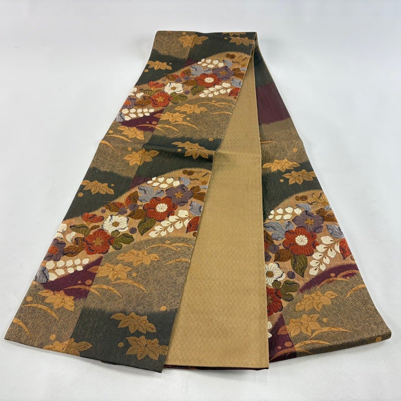 【袋帯】 茶系 茶緑色 秀品 A 帯丈401cm~425cm 7990-9980 美品 二万以下