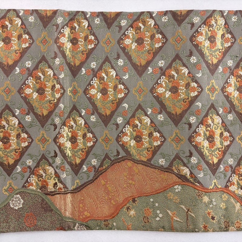 【袋帯】 灰色系 灰緑 秀品 A 帯丈426cm~435cm 7990-9980 美品 二万以下