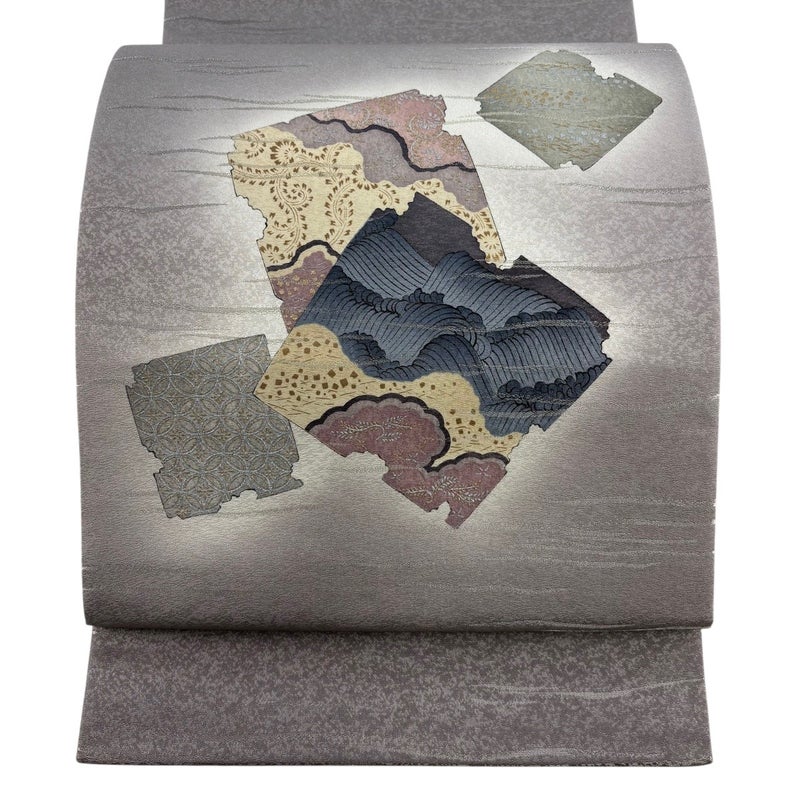 【袋帯】 灰色系 灰紫 秀品 A 帯丈436cm以上 7990-9980 美品 二万以下