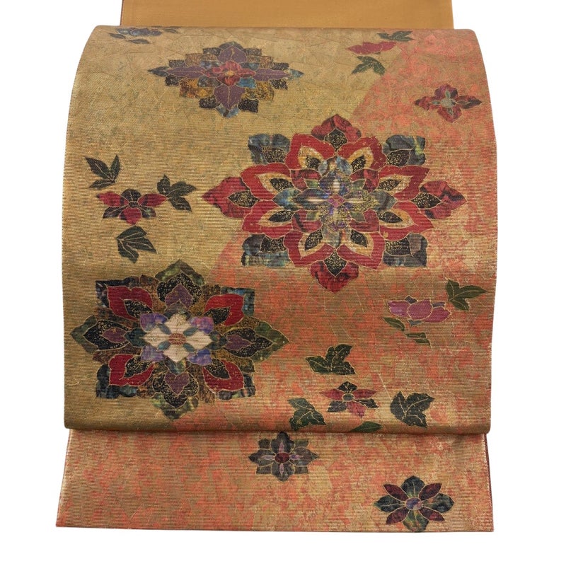 【袋帯】 赤系 オレンジ 秀品 A 帯丈436cm以上 7990-9980 美品 二万以下