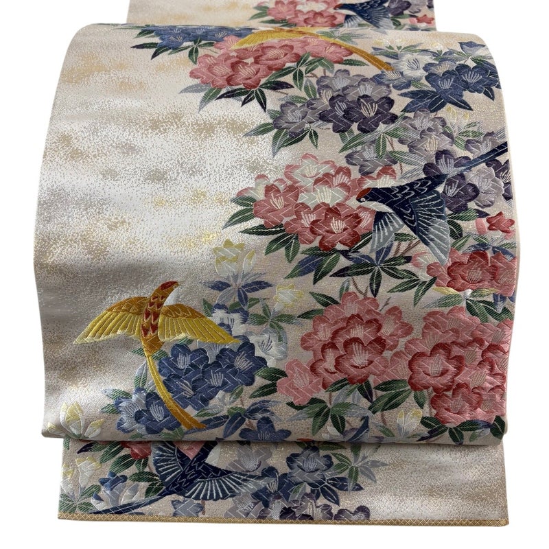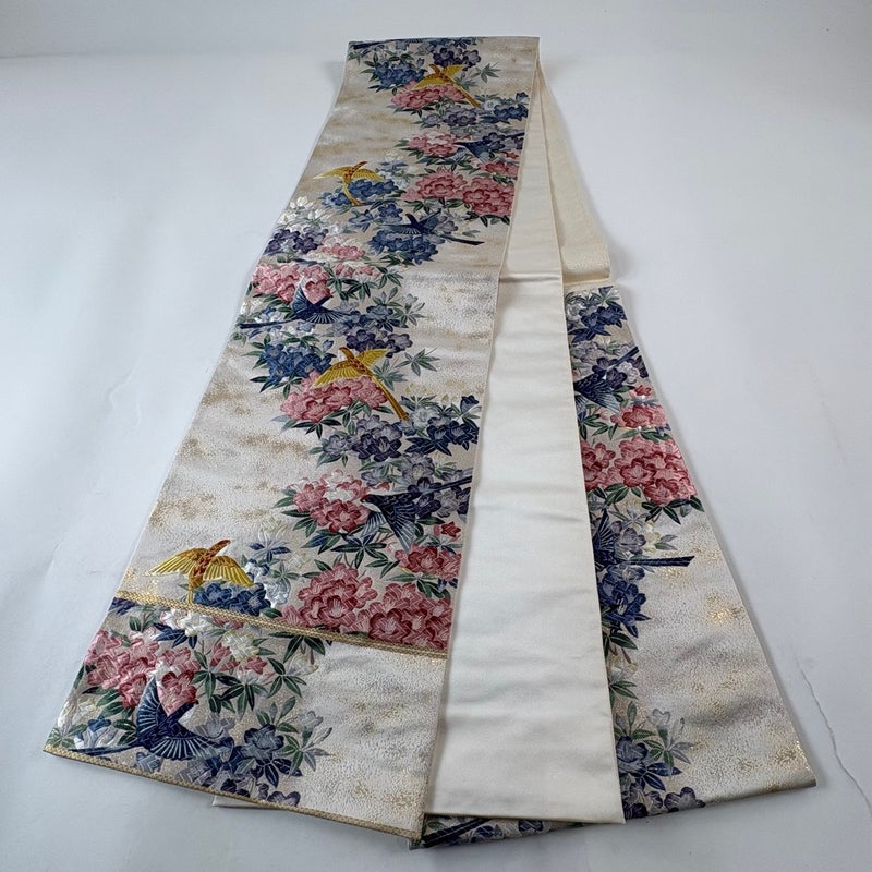 【袋帯】 白系 ベージュ 秀品 A 帯丈426cm~435cm 7990-9980 美品 二万以下