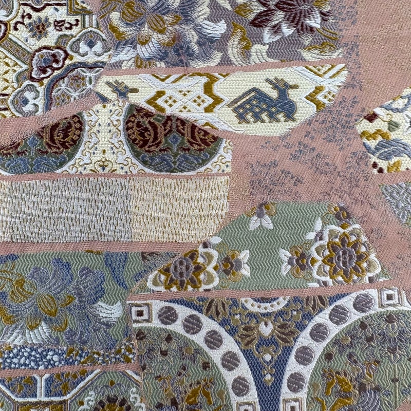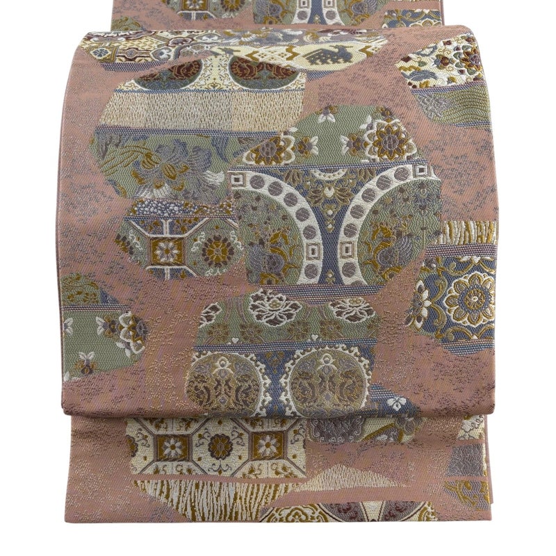 【袋帯】 赤系 ピンクベージュ 秀品 A 帯丈436cm以上 7990-9980 美品 二万以下
