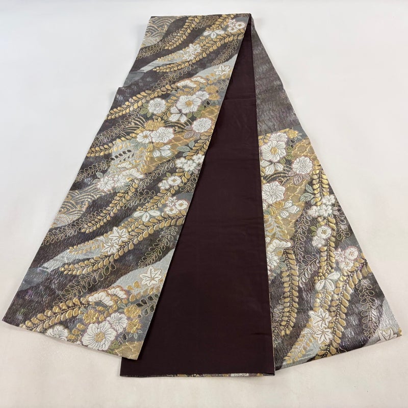 【袋帯】 灰色系 灰紫 秀品 A 帯丈426cm~435cm 7990-9980 美品 二万以下