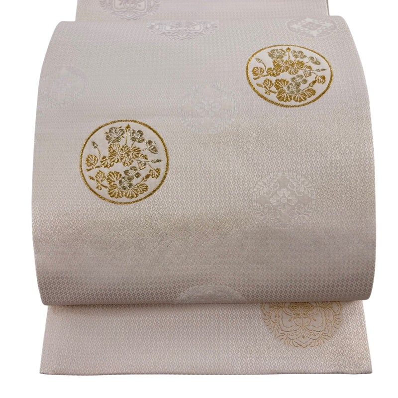 【着物ランク】秀品 【素材】正絹 【帯丈】約440cm 【帯幅】約30.5cm 【帯仕立て】仕立て上がり 【状態ランク】ランクB 【帯着用シーン】セミフォーマル(色無地・付下げ)
