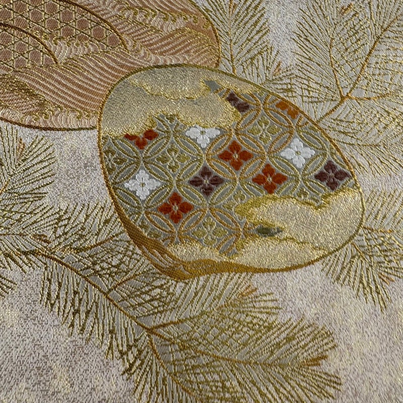 おめでたい席に相応しい意匠の袋帯でございます。 格式高いお席にもお使いいただけますので、お見逃しのないようお願いいたします。 帯芯が入っておりません。 締め跡がございます。 リユース品としては目立った染み傷なく、状態の良いお品でございます。 ※なお、厳しく商品の状態確認を行っておりますが、記載の汚れ以外にも見落とし箇所がある可能性がある旨ご了承いただけますと幸いです。 沢山の商品の中からご覧いただき誠にありがとうございます。 【PR2】