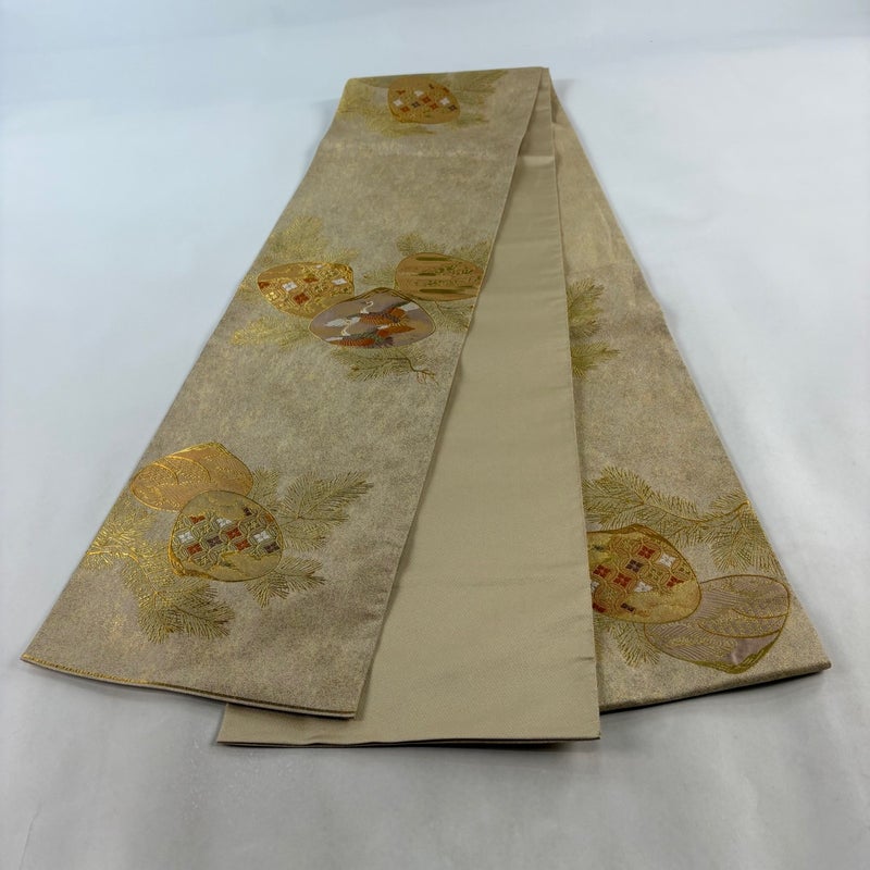 【袋帯】 白系 ベージュ 秀品 A 帯丈436cm以上 7990-9980 美品 二万以下