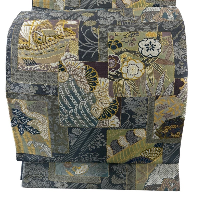 【袋帯】 灰色系 灰色 秀品 A 帯丈436cm以上 7990-9980 美品 二万以下