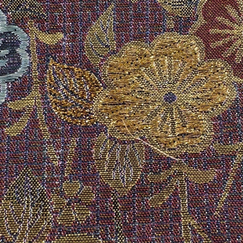 おめでたい席に相応しい意匠の袋帯でございます。 格式高いお席にもお使いいただけますので、お見逃しのないようお願いいたします。 帯芯が入っておりません。 締め跡がございます。 裏地にはお太鼓部分を含め全体的に締め跡がございます。 お太鼓付近に金糸のほつれがございます。 リユース品としては良い状態で、まだまだご活用頂けると思われます。 ※なお、厳しく商品の状態確認を行っておりますが、記載の汚れ以外にも見落とし箇所がある可能性がある旨ご了承いただけますと幸いです。 沢山の商品の中からご覧いただき誠にありがとうございます。 【PR2】