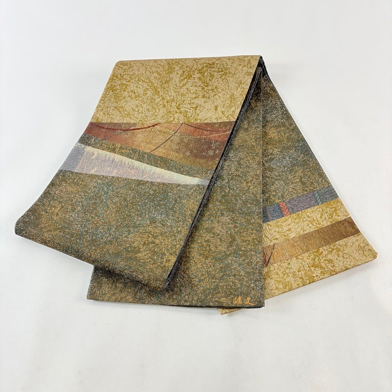 【袋帯】 茶系 茶緑色 秀品 A 帯丈436cm以上 7990-9980 美品 二万以下
